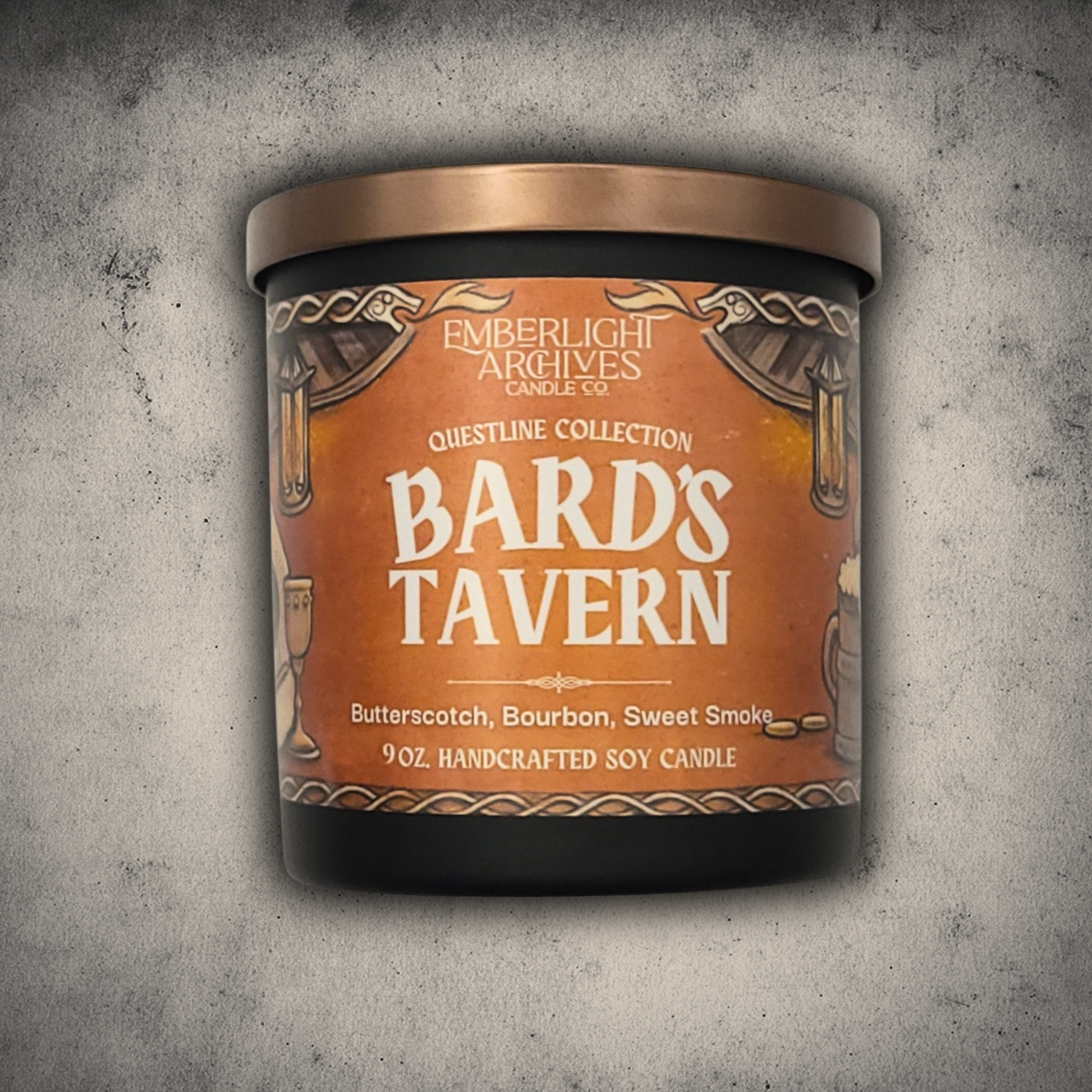 Transport yourself to a cozy tavern filled with tales and melodies with our Bard’s Tavern candle. This sweet & smoky blend evokes the ambiance of a gathering place for adventurers, with notes of butterscotch, bourbon, and smoke.